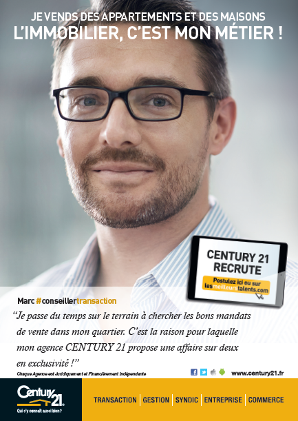 Avec 850 agences et 5 500 collaborateurs en France, CENTURY 21, premier réseau d’agences immobilières dans le monde, offre de nombreuses opportunités dans les métiers de l’immobilier (achat - vente – location – gestion immobilière – immobilier de commerce et d’entreprise).